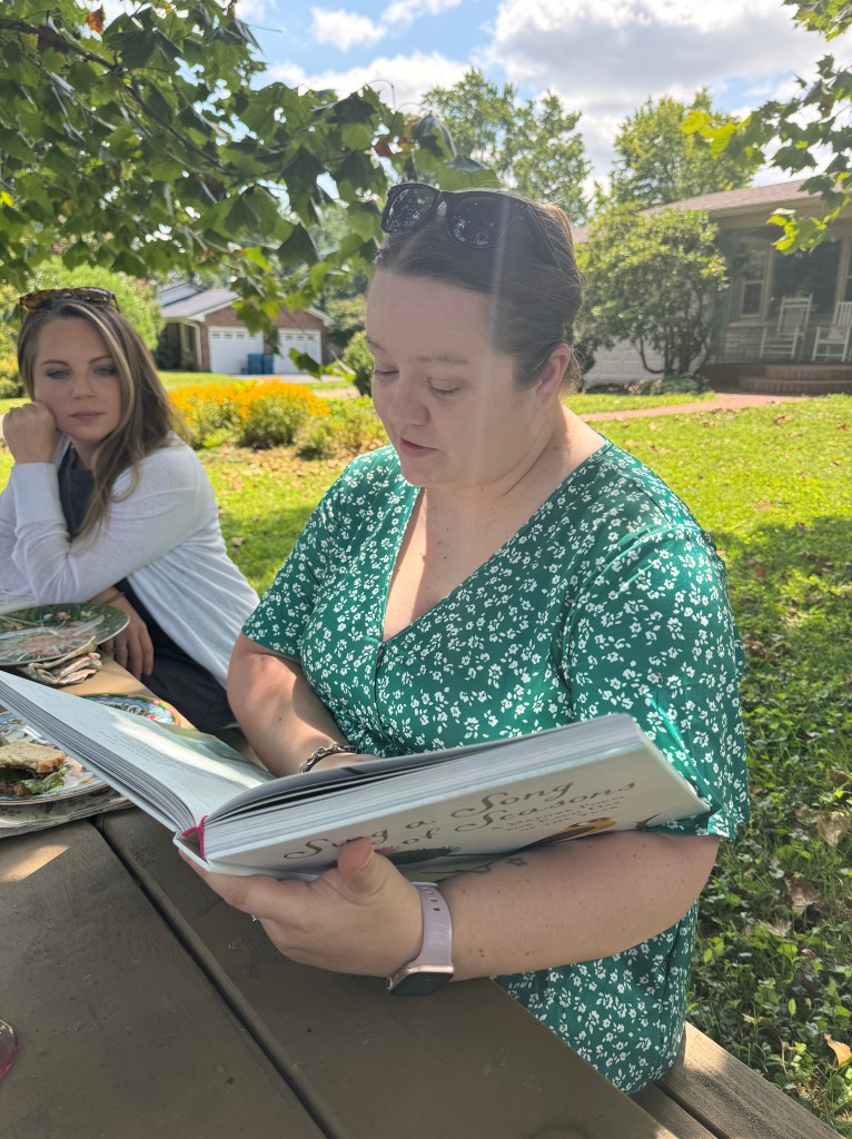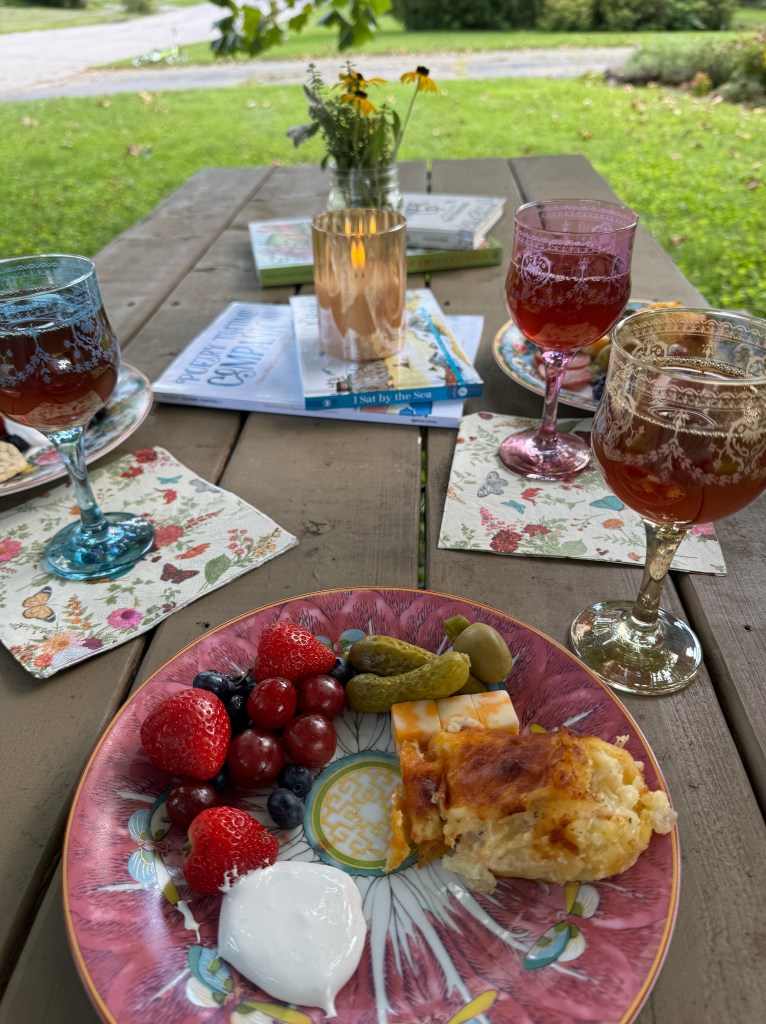 This tea had a poetry theme and we each read a poem or two out loud to each other. We dined under the big sycamore tree in the front yard.