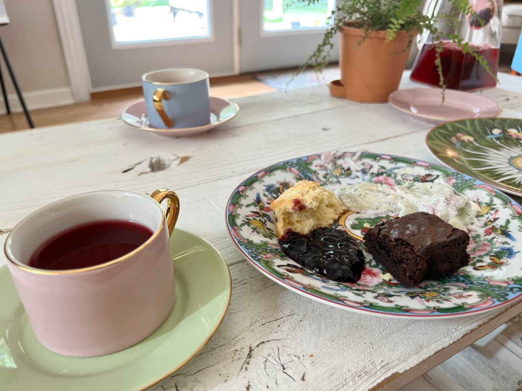 Our first tea in my cottage! We kept it in the living room, which was a fun change. We played a new game that made everyone laugh & enjoyed looking out the windows onto all the green in bloom.